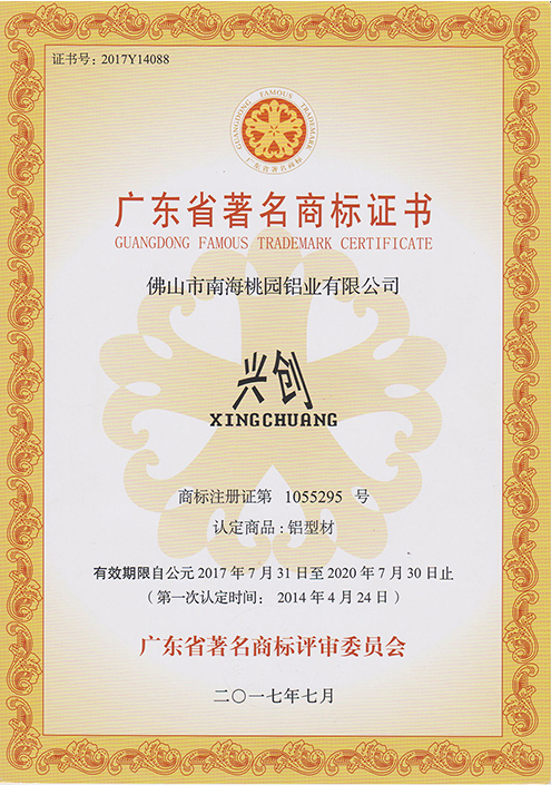 廣東省著名商標證書