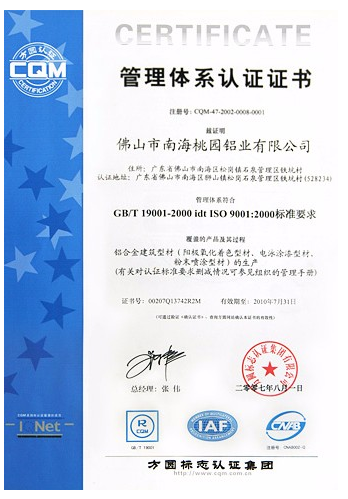管理體系認證證書