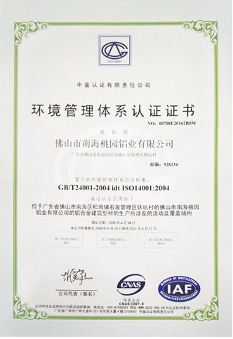 環(huán)境管理體系認證證書