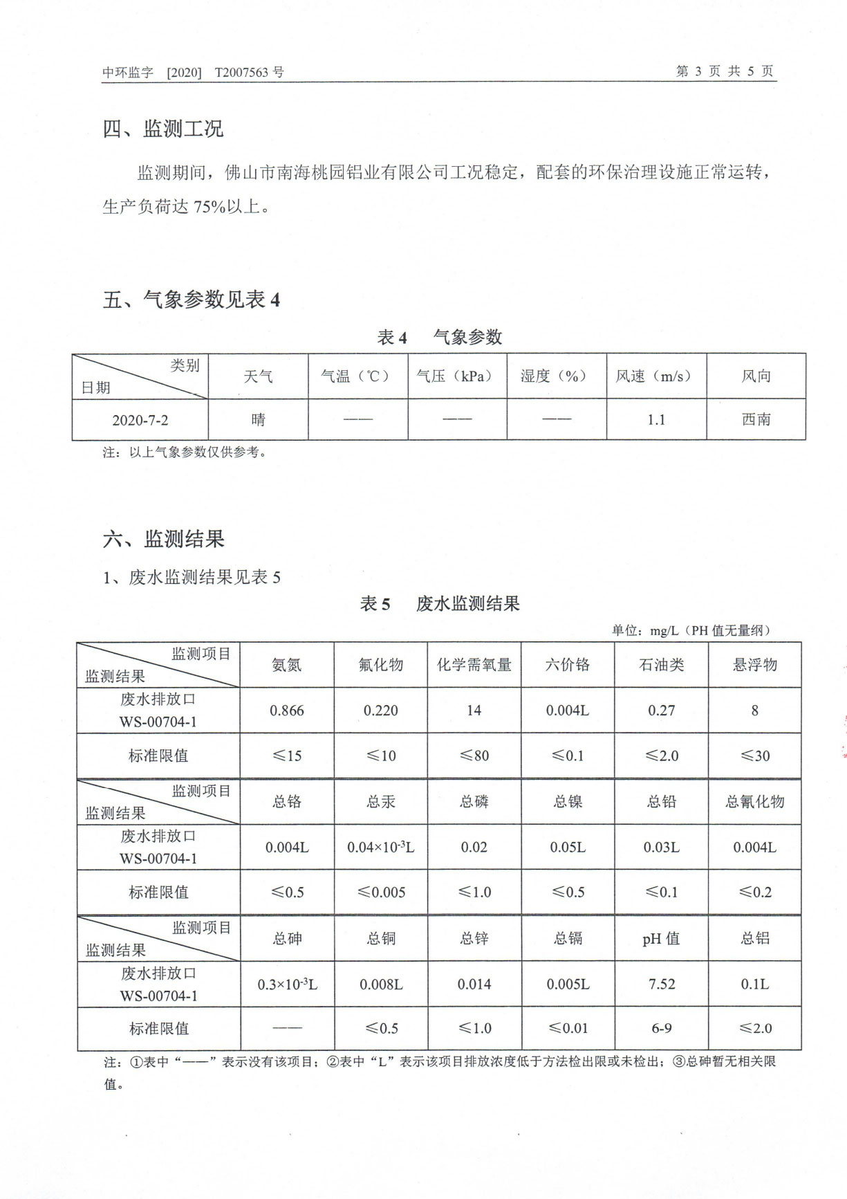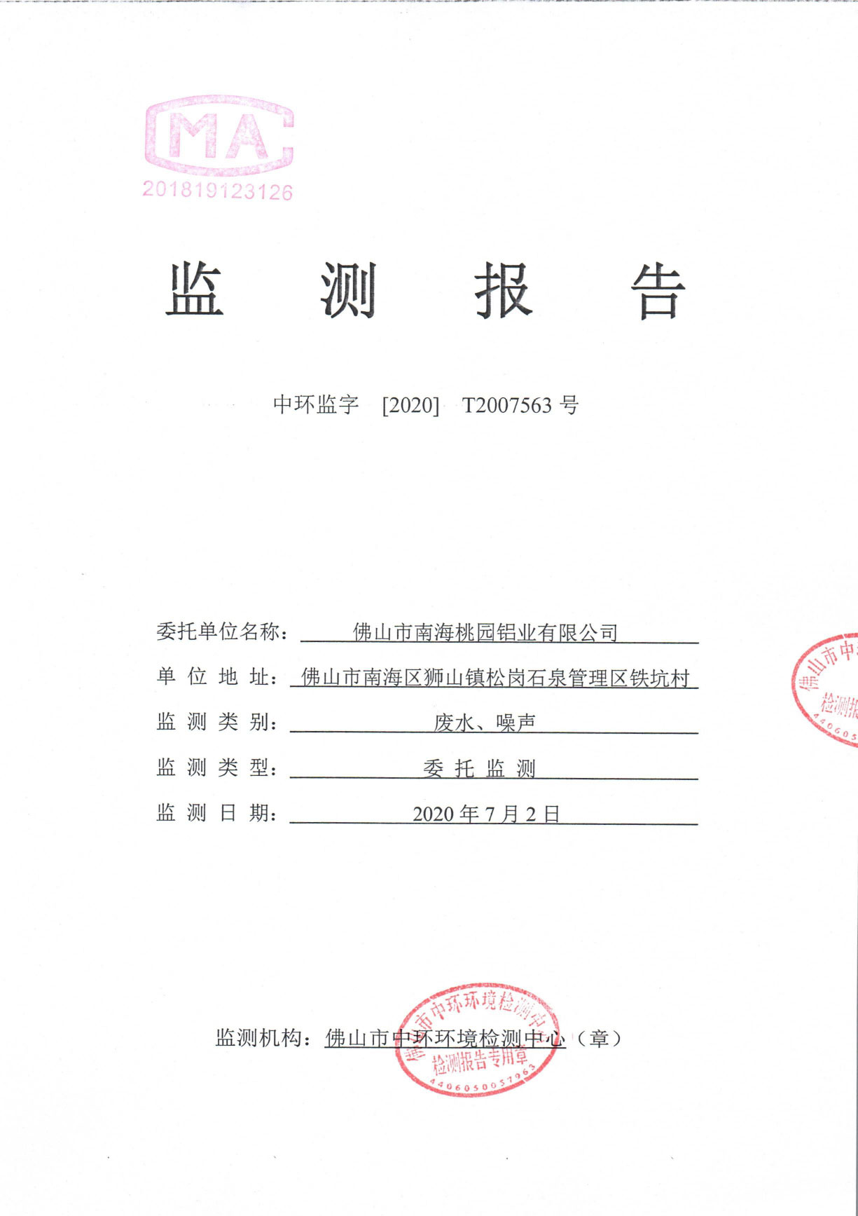 桃園鋁業(yè)2020年7月監(jiān)測報告