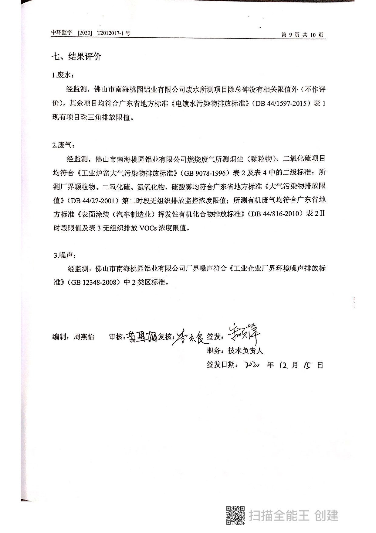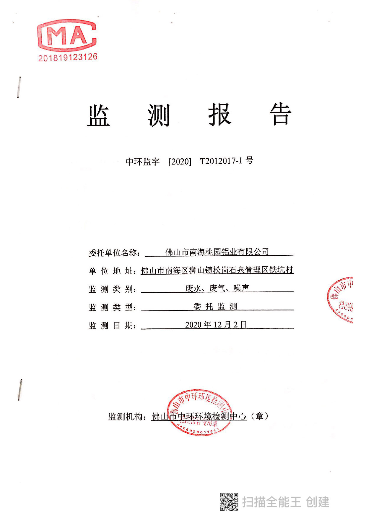 桃園鋁業(yè)2020年12月監(jiān)測報告
